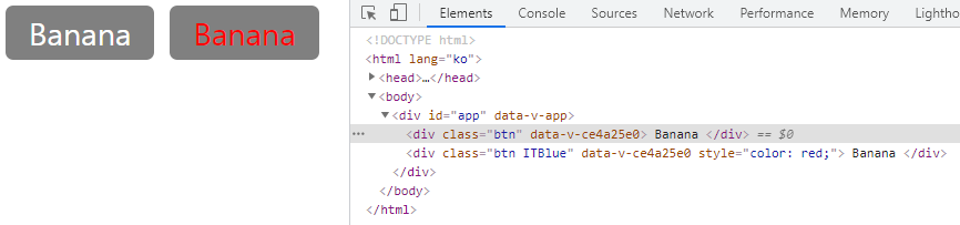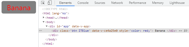 <template> <MyBtn class="ITBlue" style="color: red"> Banana </MyBtn> </template> <!-- script 생략 -->MyBtn.vue