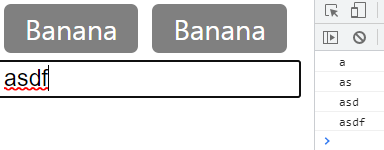 <!-- App.vue --> <template> <MyBtn @ITBlue="log" @change-msg="logMsg"> Banana </MyBtn> </template> <script> import MyBtn from '~/components/MyBtn' export default { components: { MyBtn }, methods: { log(event) { console.log('Click!!') console.log(event) }, logMsg(msg) { console.log(msg) } } } </script><!-- MyBtn.vue --> <template> <div class="btn 1"> <slot></slot> </div> <div @dblclick="$emit('ITBlue', $event)" class="btn 2"> <slot></slot> </div> <input type="text" v-model="msg" /> </template> <script> export default { emits: [ 'ITBlue', 'changeMsg' ], data() { return { msg: '' } }, watch: { msg() { this.$emit('changeMsg', this.msg) } } } </script> <style scoped lang="scss"> .btn { display: inline-block; margin: 4px; padding: 6px 12px; border-radius: 4px; background-color: gray; color: white; cursor: pointer; } </style>결과