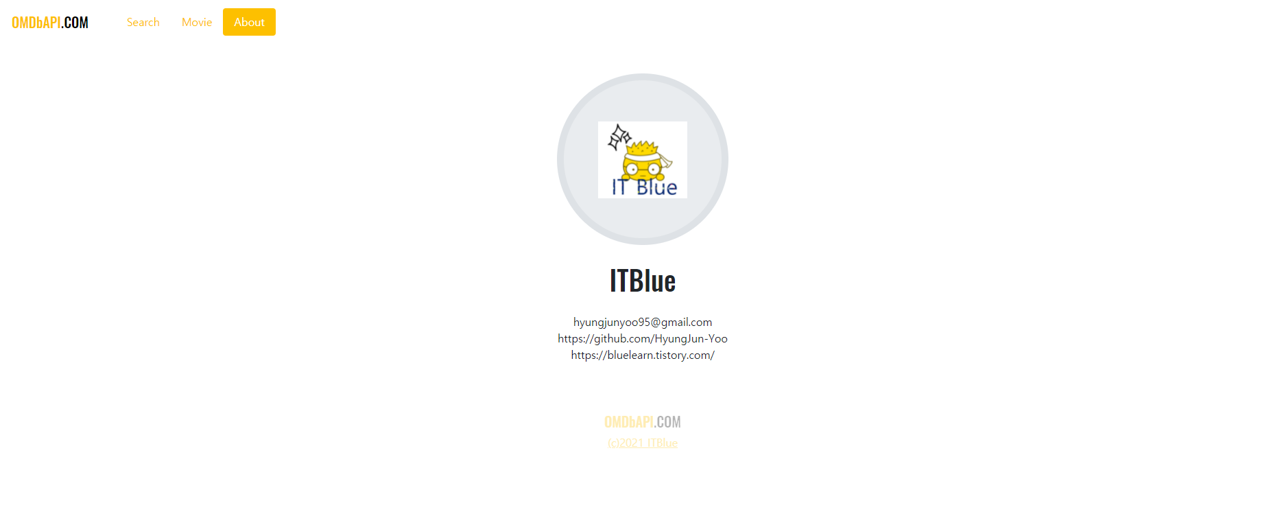 /* 개발자의 정보, 사용자의 정보 취급하는 용도 */ export default { namespaced: true, state: () => ({ name: 'ITBlue', email: 'hyungjunyoo95@gmail.com', git: 'https://github.com/HyungJun-Yoo', blog: 'https://bluelearn.tistory.com/', image: '/src/assets/Blue.png' }) }2. /src/routes/About.vue 수정